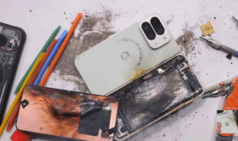 Зак Нельсон, более известный как JerryRigEverything, протестировал множество смартфонов на их прочность, но недавний случай стал исключением. В его последнем видео Google Pixel 10 Pro Fold фактически загорелся во время теста на изгиб. При попытке проверить прочность устройства, оно прогнулось больше, чем ожидалось, и один из внутренних аккумуляторов был поврежден, что привело к короткому замыканию. Через несколько секунд из телефона повалил дым, а затем появилось небольшое пламя.