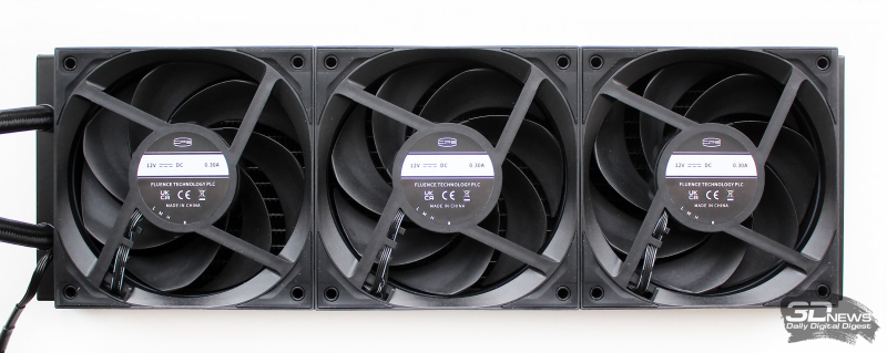 В итоге преимущества более плотного радиатора с дополнительными каналами могут быть нивелированы далеко не самой высокой производительностью вентиляторов. По всей видимости, инженеры PCCooler понимали это и попытались компенсировать эффект увеличением максимальной скоростью вращения крыльчаток вентиляторов — она достигает впечатляющих 3000 об/мин. Такого на СЖО для домашних компьютеров мы до сих пор не видели.
