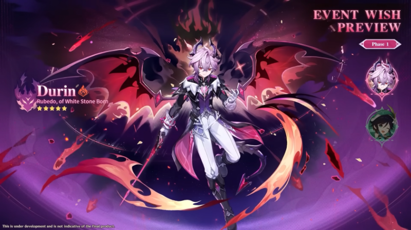 Новичками патча станут Дурин и Ягода. Первый прибыл в Тейват из сказочного мира Симуланки, но позже получил человеческое тело благодаря алхимии Альбедо. В итоге этого уникального перерождения персонаж получил возможность сражаться в двух формах. Во-первых, это саппорт, снижающий сопротивление противников и наносящий Пиро урон по области, а во-вторых, это дамагер с силой Бездны, способный наносить сокрушающие удары по одиночным целям, усиливая урон от реакций Пар и Таяние, вызванных самим Дурином.